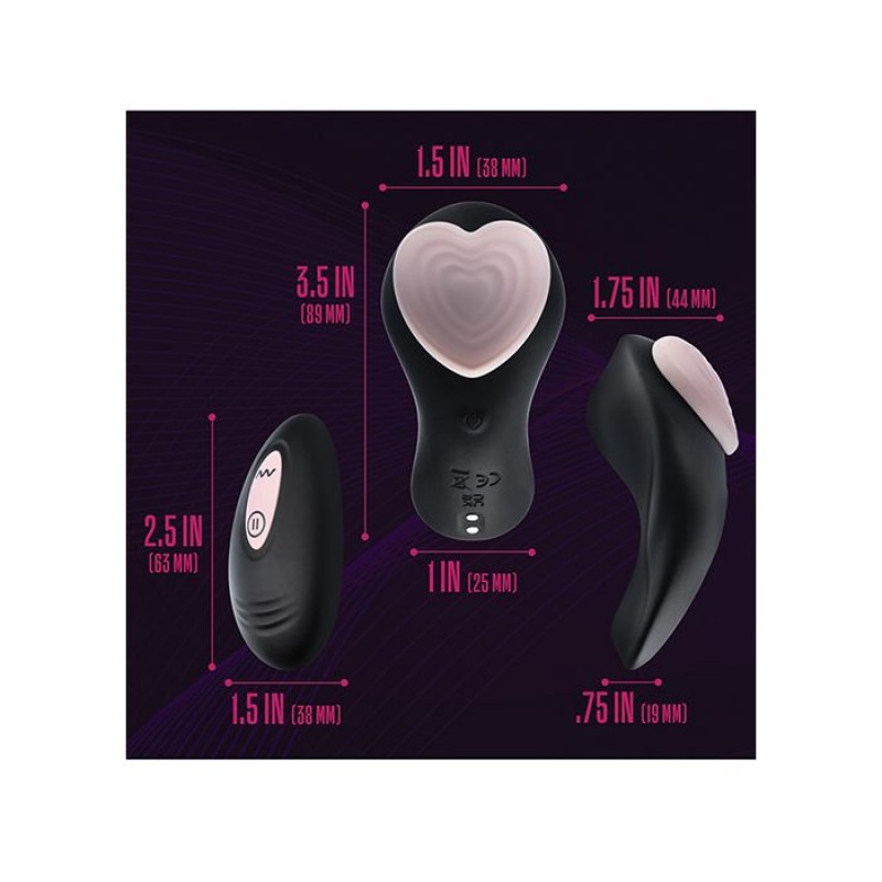 Raise your Heartbeat and discover pleasure in any environment. The Heartbeat Panty Vibe allows you to wear your vibe discreetly where ever you go. This panty vibe boasts a strong magnetic attachment that guarantees a secure fit, designed to be effortlessly attached to any undergarment.