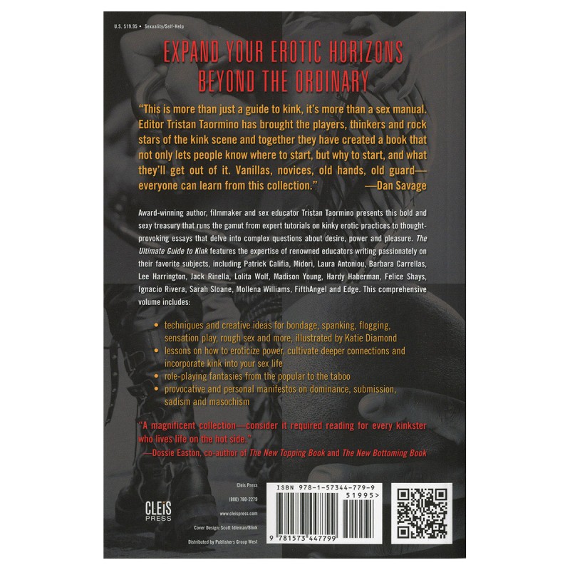 Expand your erotic horizons beyond the ordinary Whether you are just curious about kinky sex, an experienced BDSM player, or interested in exploring your own erotic edges, this diverse guide to the world of kink is sure to inform, inspire and challenge! The Ultimate Guide to Kink features the expertise of renowned educators writing passionately on their favorite subjects, including Patrick Califia, Midori, Laura Antoniou, Barbara Carrellas, Lee Harrington, Jack Rinella, Lolita Wolf, Madison Young, Hardy Haberman, Felice Shays, Ignacio Rivera, Sarah Sloane, Mollena Williams, FifthAngel and Edge. This comprehensive volume includes: