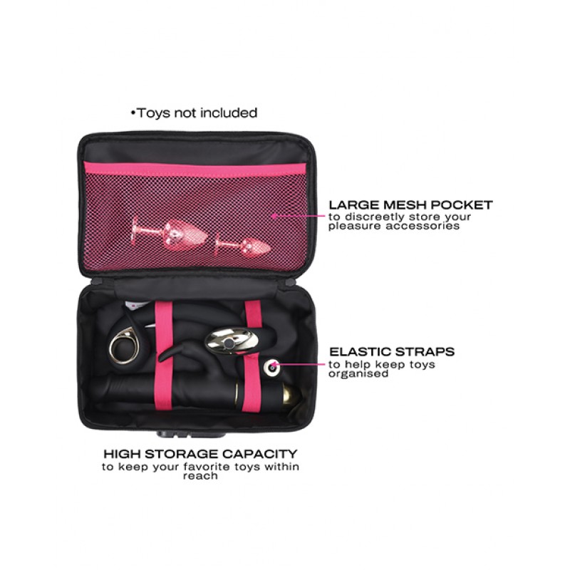 Your secret garden belongs to you, keep it safe from prying eyes! Much more than a simple storage box with a padlock, the Discreet Box by Dorcel houses all your sex toys and naughty accessories. Because your secrets are yours alone, the Discreet Box closes with an integrated padlock with a customizable code. Don't worry, you won't risk losing the keys. Its large storage capacity (4-5 medium-sized toys) allows you to keep all your favorite toys close at hand. Its sober and refined black look allows it to go incognito in your bedroom, your bathroom or even your suitcase. The internal pocket and the elastics inside keep accessories and cleaning products perfectly in place. It's up to you to choose when you want to open your naughty secret box!