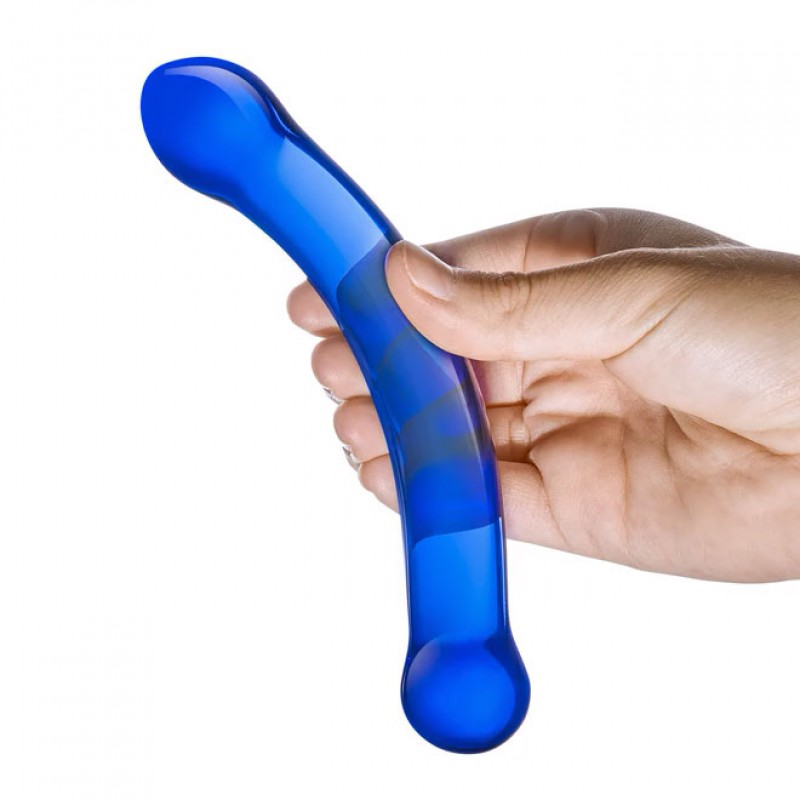 Glas 6" Curved G-spot Blue Handblown Glass Dildo