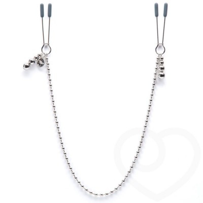 These nickel-free metal clamps offer just a gentle pinch for teasing pleasure. The chain allows for tugging for added stimulation.