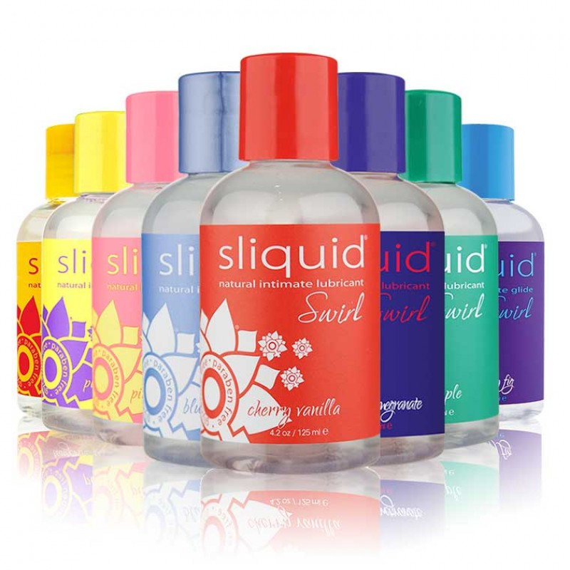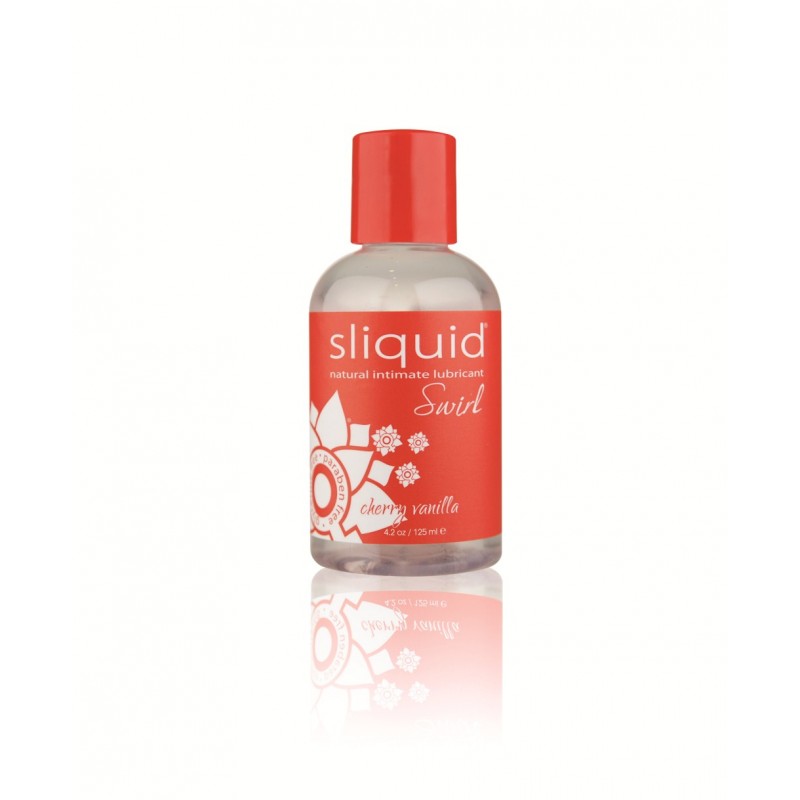 Swirl is a flavored water based lubricant that is glycerin and paraben free. Swirl's formulation starts with the original Naturals H2O water based lubricant, then adds flavoring and a hint of aspartame to sweeten. The flavor is subtle, and is intended to enhance your taste, not disguise. All Sliquid products are formulated by sensitive women, for sensible women, and will never cause yeast infections or UTI's. Sugar-free and subtly sweet, these flavors will delight any tastebud!