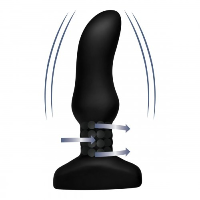 This is the slimmer version of the curved Model M Rimmer for those that prefer less girth! Shaped to target the P-spot or, in women, to reach towards the G-spot, this anal massager also features a bulging bulb for your inner pleasure. Better than your average butt plug, this revolutionary sex toy will actually massage the opening to your hole with rotating beads and a spiral texture along its stem, providing a sensation similar to a rim job! Play with 3 speeds and 2 functions of swirling satisfaction around your sphincter. You will also be treated to 3 speeds and 5 patterns of vibration as the plug thrums inside you. An optional remote control can make playing on your own easier, but it can also provide wireless fun with a partner. Light up buttons on the remote and the plug make them easy to see in the dark. Made of premium silicone, this exciting tool is non-porous, phthalate-free, and waterproof for a body-safe experience and thorough sanitization with soap and water.
