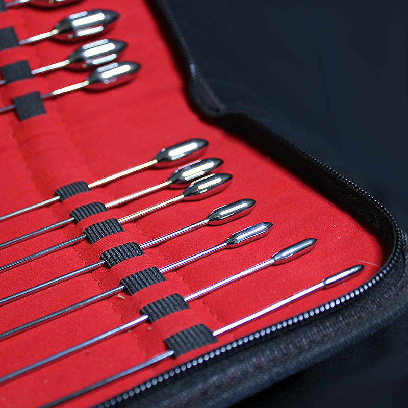 This set of rosebud sounds, also known as bakes sounds or bullet sounds, all measure 30cm long and come with an easy to grip handle. The fine stainless steel shafts are then topped with a highly-polished rosebud or bullet shaped tip. In the pack, you receive 12 individual Rosebud Sounds ranging in sizes 2mm through 13mm.