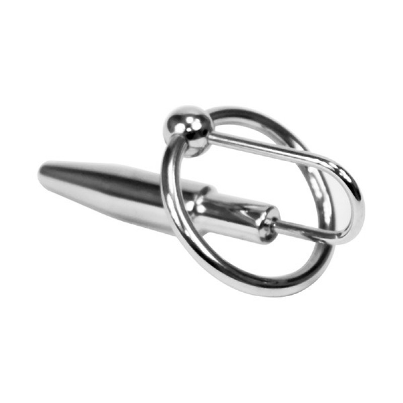 This cock tip ring has a 8 mm diameter x 4 cm long urethra sounding plug suspended on the end and is free to slide around the ring. The ring rests just under the penis head around the shaft. Live different experiences with this plug for the penis. It is inserted through the urethra and serves to dilate that area and produce more pleasurable sensations and more extreme orgasms.