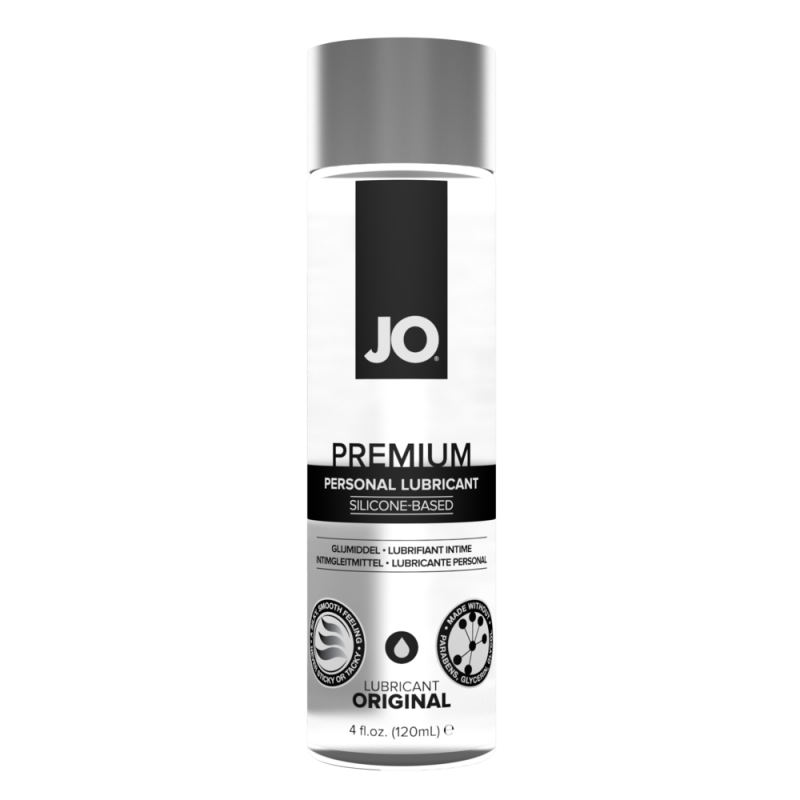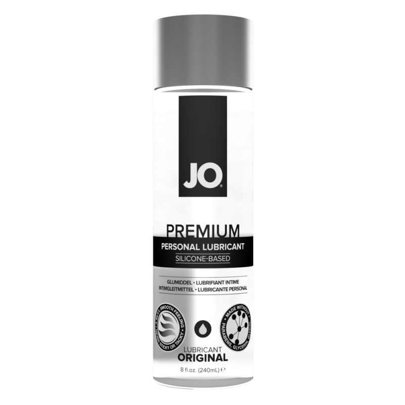 O® PREMIUM is a silicone-based personal lubricant designed to supplement the body’s natural lubrication and enhance the pleasures of intimacy. The silky smooth, buttery glide is water-resistant and long lasting, making it an ideal partner for adventurous play. JO® PREMIUM is free of preservatives and formulated using only the highest quality silicones. A little goes a long way!