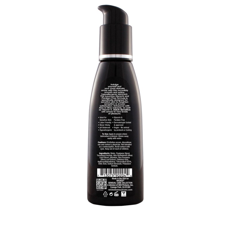 Indulge delicate areas with this incredibly smooth and satiny, hypoallergenic intimate lubricant. The luxurious glycerin and paraben-free formula is specifically designed for anyone with skin sensitivities. Enriched with skin-nurturing vitamin E, aloe & olive extracts, Aqua Sensitive lubricant will pamper with a new level of pleasure and peace of mind.