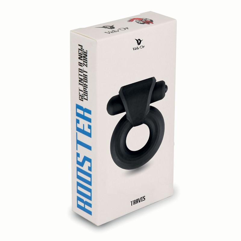 ROOSTER TRAVIS is a bulky, soft silicone, cock ring with a vibrating bullet to please you and your partner. With the ring on the base of your erect penis you can wear the bullet facing towards your stomach or towards your scrotum. It just depends on where you or your partner like to be vibrated. When enringed with ROOSTER TRAVIS you will enjoy a rocking erection in its firm grip.